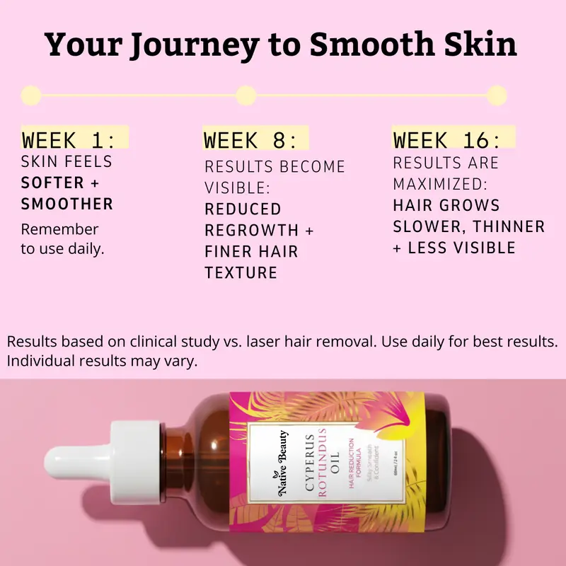 After a month of consistent daily application treatments, you’ll notice a significant reduction in hair growth.